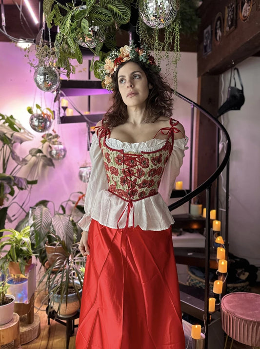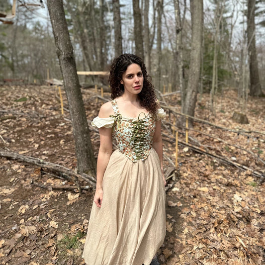 Historically Inspired Floral Cross Tie Renaissance Corset Laced in front, Hidden Side Zipper!