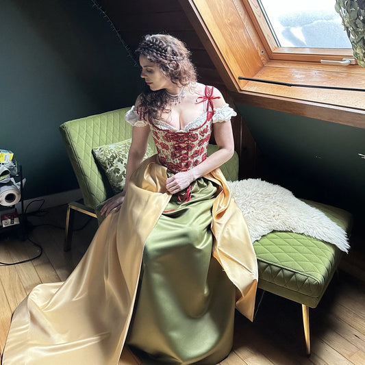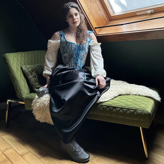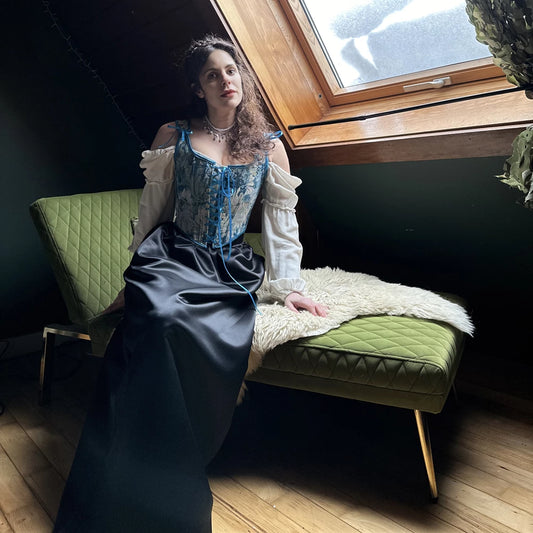 Historically-inspired Renaissance Back Lacing Embroidered Satin Corset
