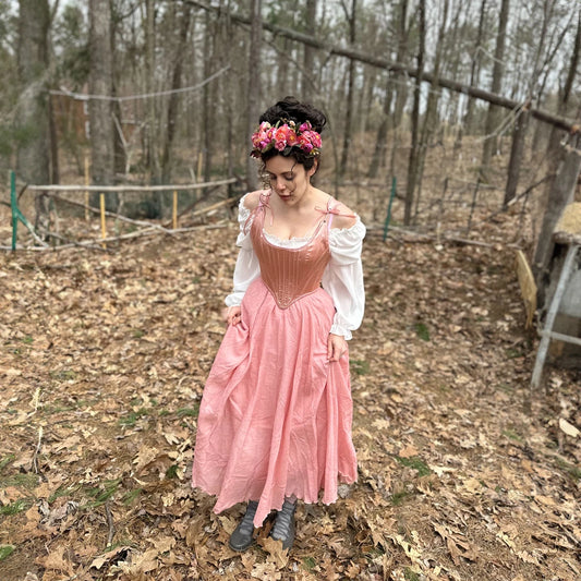 Satin Pink Boned Renaissance Bodice with Back Corset Lacing