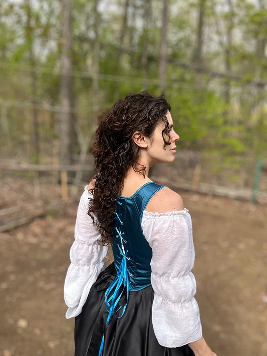 Satin Teal Blue Boned Renaissance Bodice with Back Corset Lacing