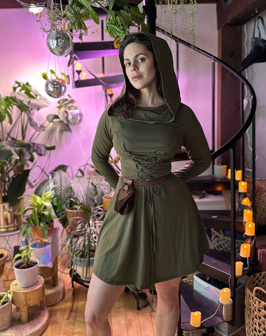 Assassins Hooded Dress – Asymmetrical & Casual, Flattering Corset Lacing